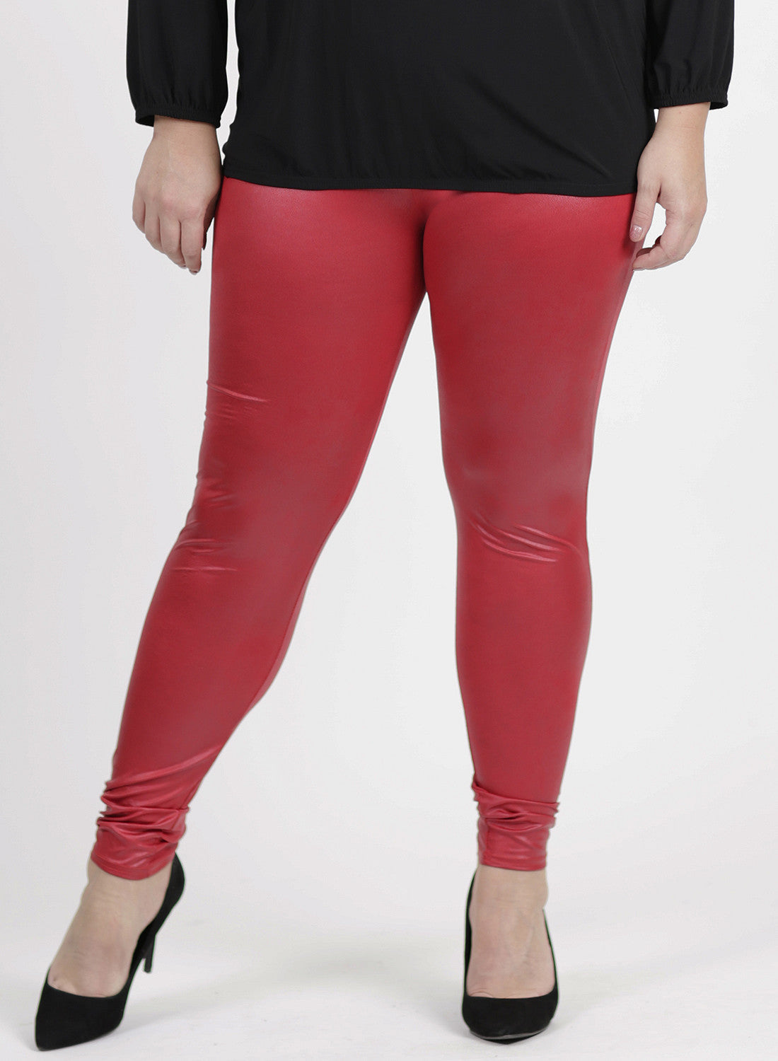 Beschrijving: De F-0023 leather look legging geeft iedere outfit een stoere en toch vrouwelijke uitstraling. Het gladde, licht glanzende materiaal heeft de look van echt leer, maar voelt zacht en comfortabel aan op de huid. Dankzij de elastische pasvorm zit de legging als gegoten en beweegt hij soepel met je mee. Perfect te combineren met een lange blouse, tuniek of oversized trui voor een modieuze, zelfverzekerde look.