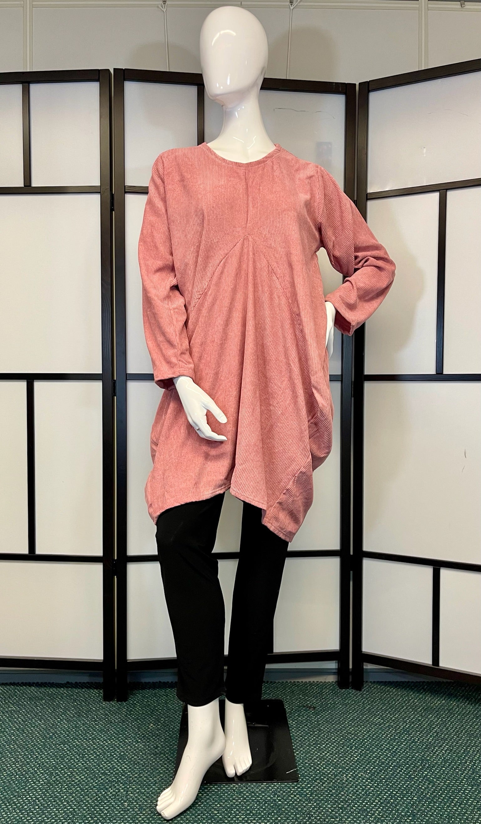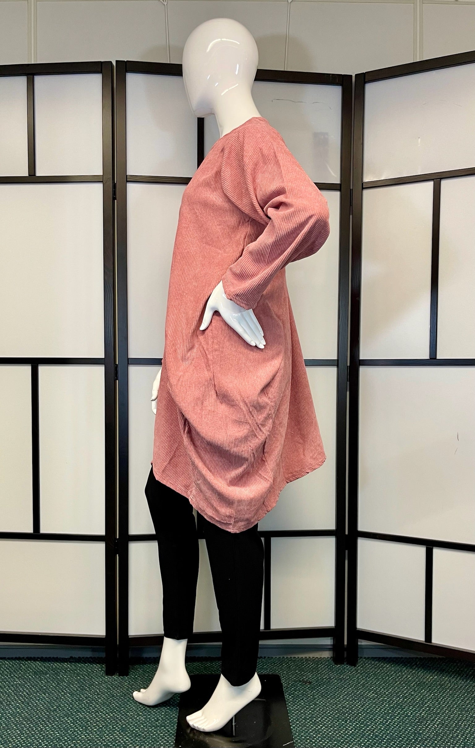 Beschrijving: Deze jurk combineert comfort en stijl met een losvallende pasvorm en speelse asymmetrische zoom. De subtiele plooidetails aan de voorkant zorgen voor een flatterend effect, terwijl de lange mouwen en zachte stof het een ideale keuze maken voor een casual en moeiteloos chique look.