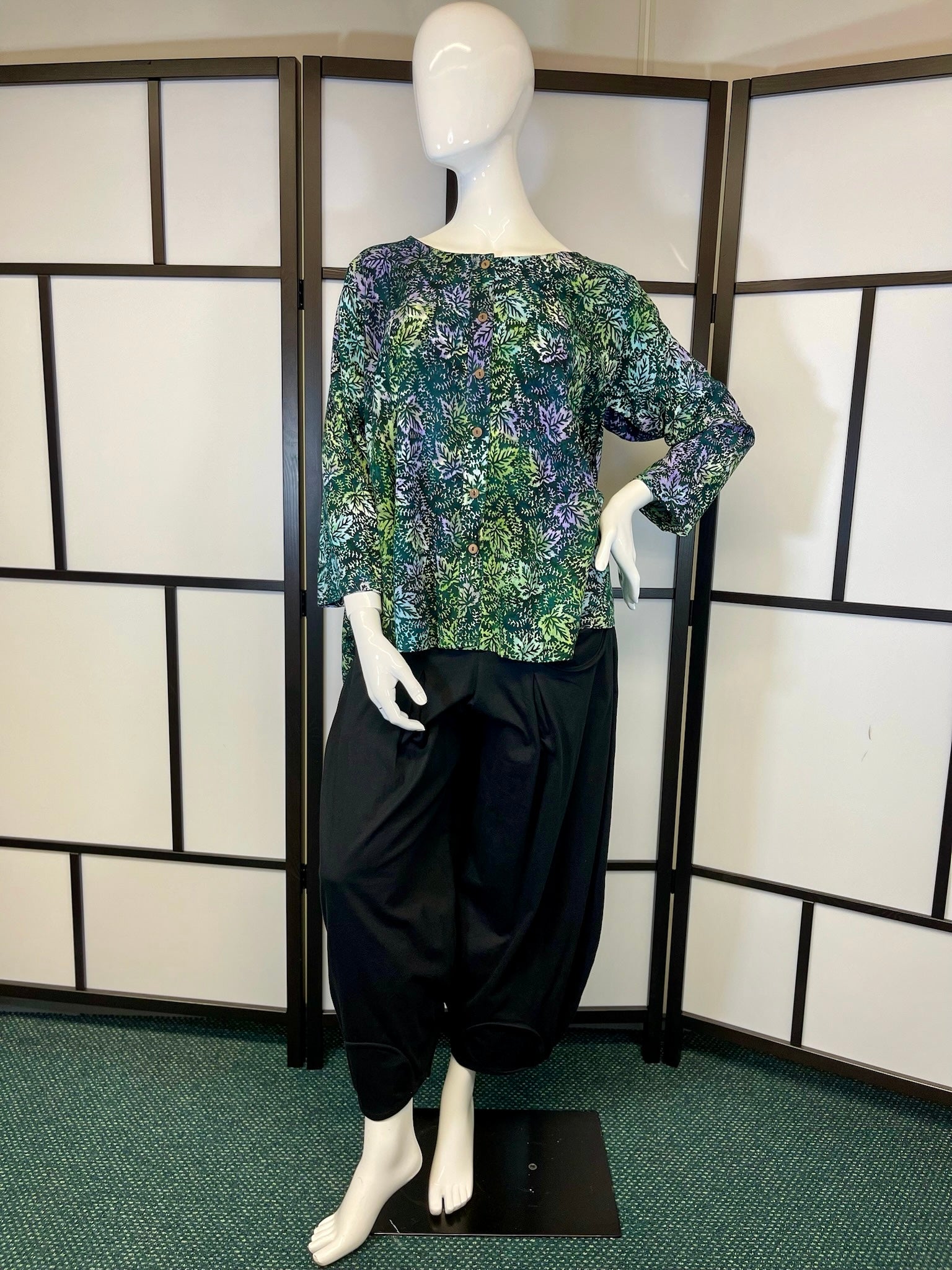 Beschrijving: Prachtige kleurrijke top met knopen. De stof voelt erg fijn aan en de mouwen komen tot de pols.