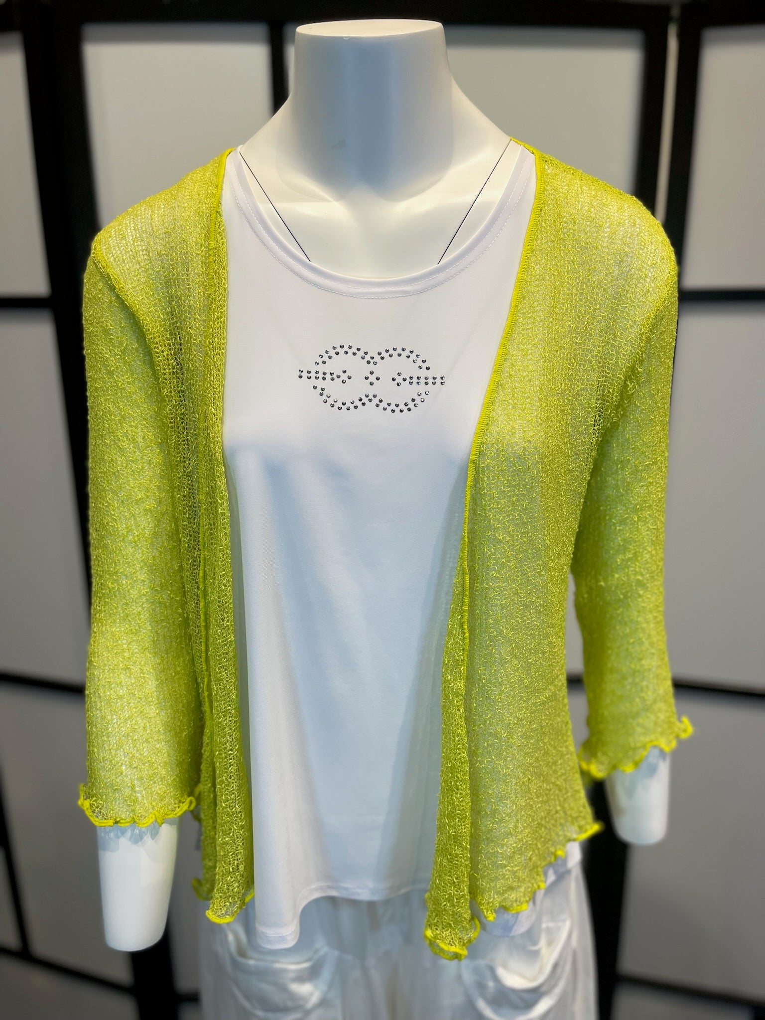 Beschrijving: Geef je outfit een elegante touch met dit openvallende vest. Het vest is licht, luchtig en ideaal om te dragen over een top of jurk. Met de speelse geschulpte randen en driekwartmouwen is dit item zowel stijlvol als comfortabel – perfect voor elke gelegenheid, van casual tot chic.