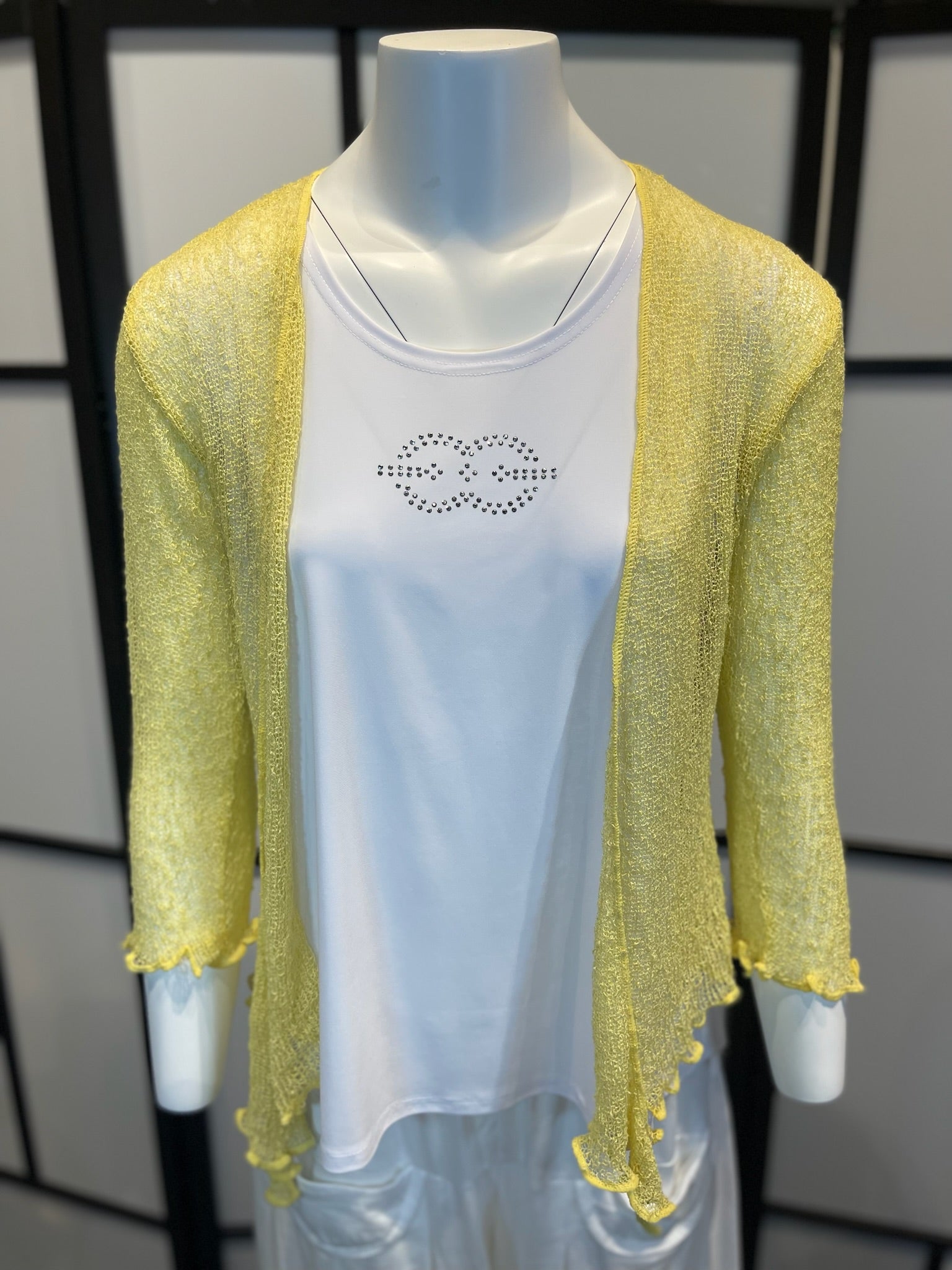 Beschrijving: Geef je outfit een elegante touch met dit openvallende vest. Het vest is licht, luchtig en ideaal om te dragen over een top of jurk. Met de speelse geschulpte randen en driekwartmouwen is dit item zowel stijlvol als comfortabel – perfect voor elke gelegenheid, van casual tot chic.
