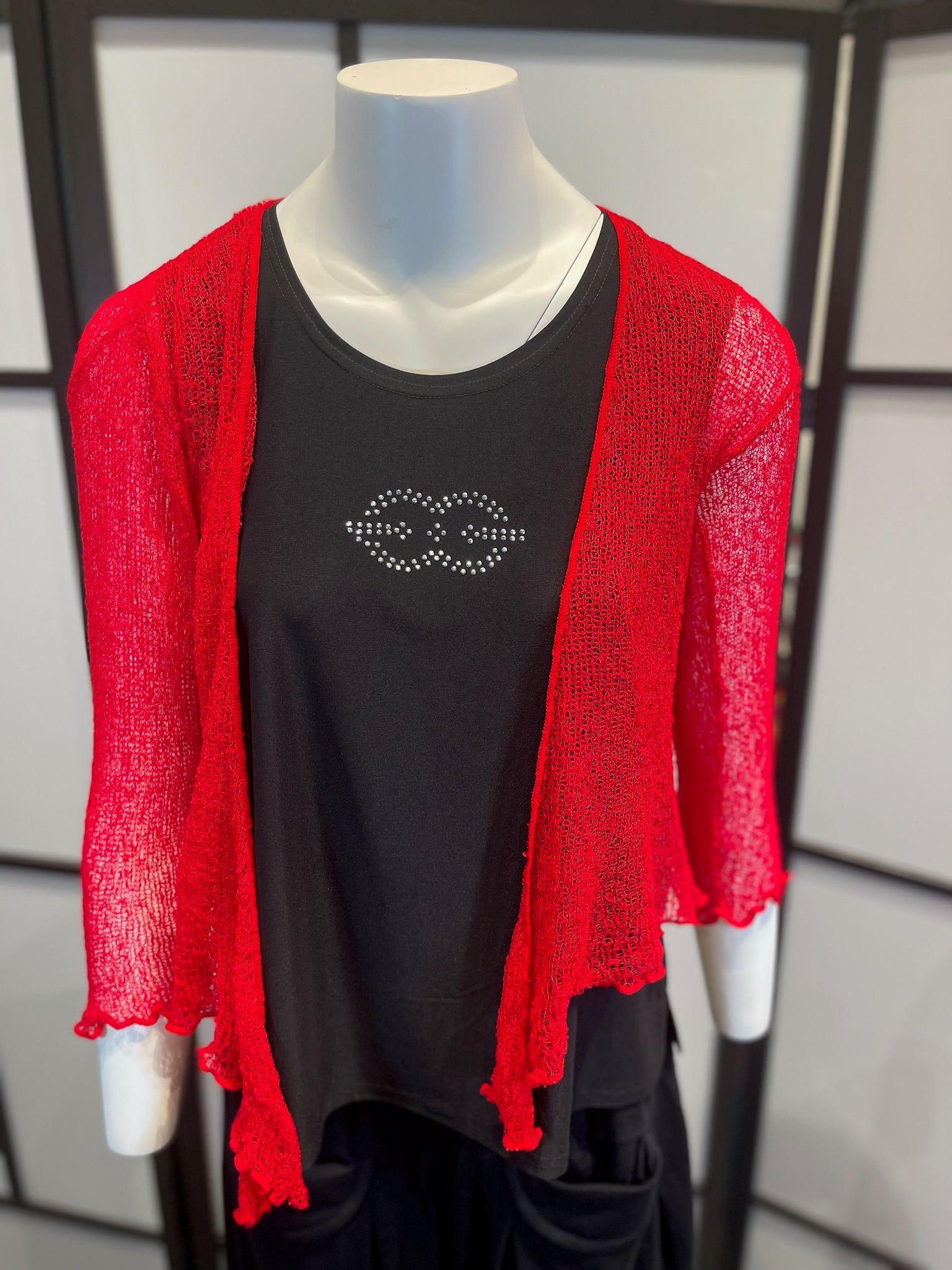 Beschrijving: Geef je outfit een elegante touch met dit openvallende vest. Het vest is licht, luchtig en ideaal om te dragen over een top of jurk. Met de speelse geschulpte randen en driekwartmouwen is dit item zowel stijlvol als comfortabel – perfect voor elke gelegenheid, van casual tot chic.