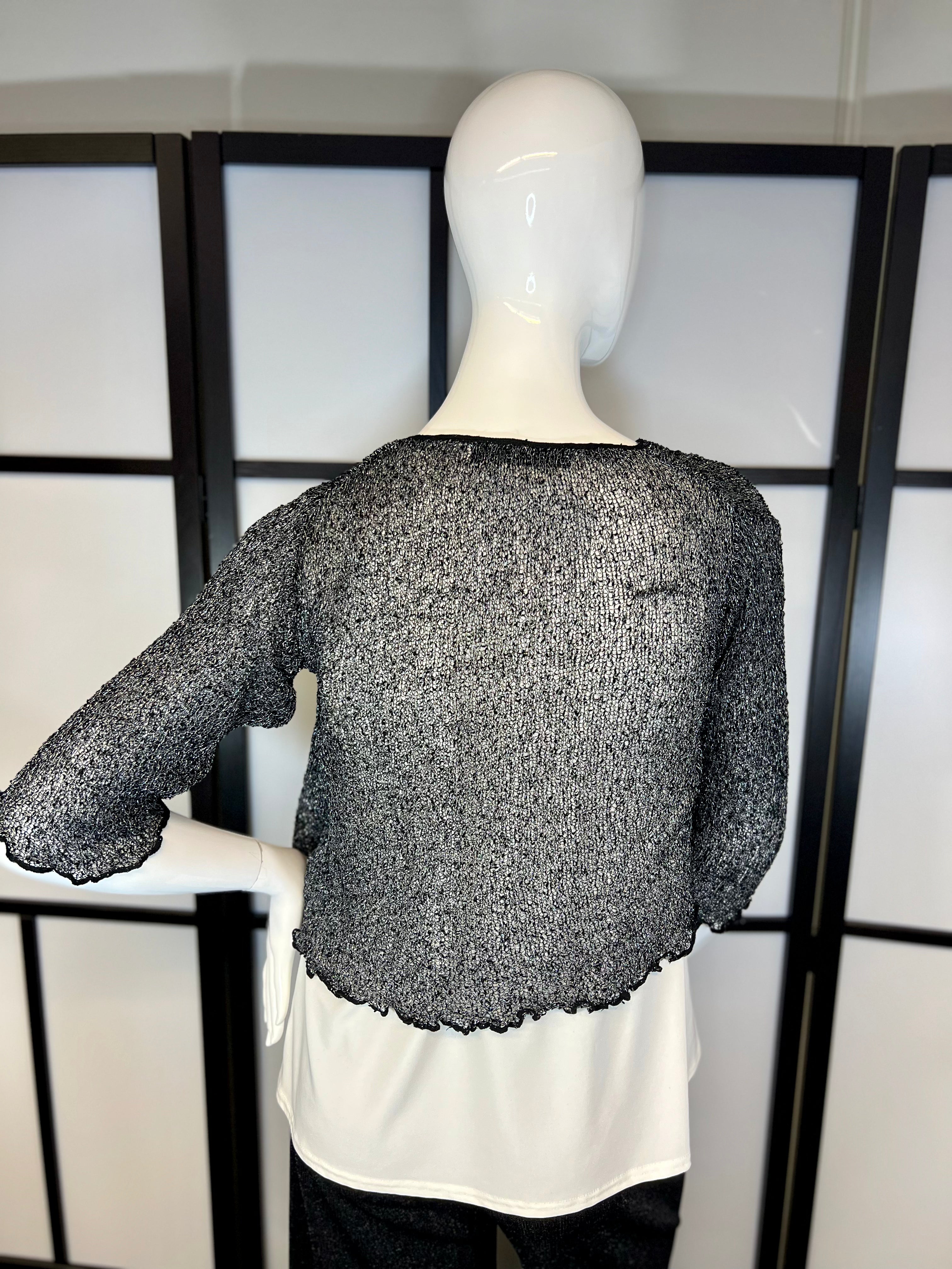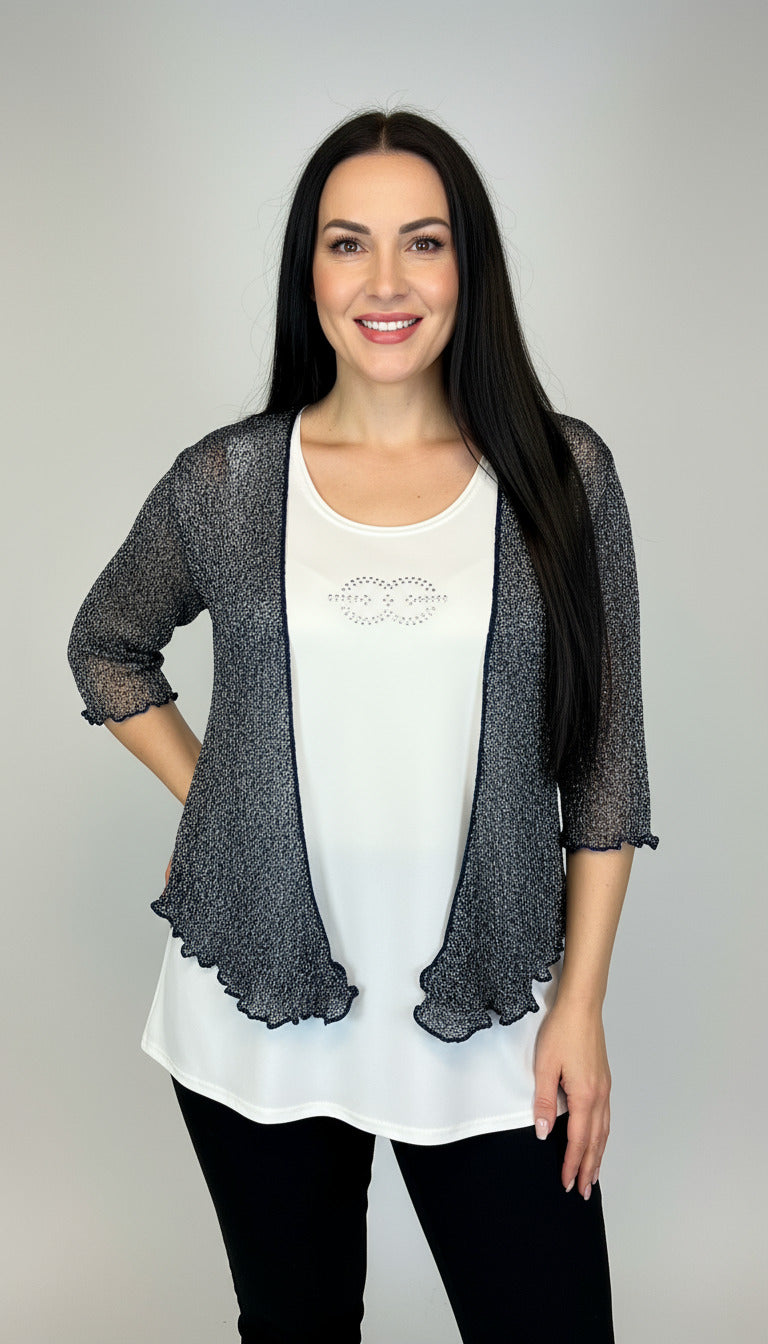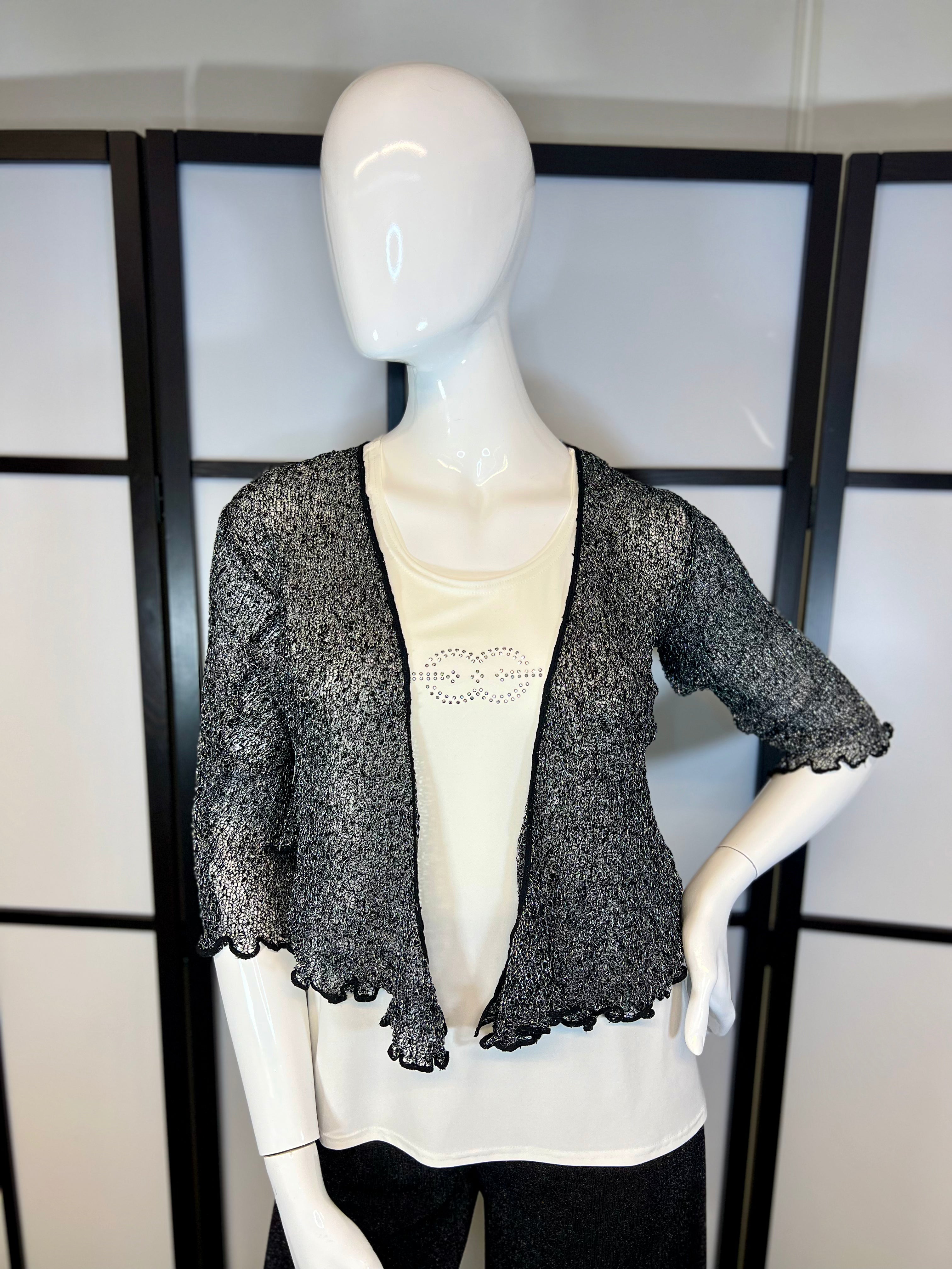 Beschrijving: Geef je outfit een elegante touch met dit openvallende vest. Het vest is licht, luchtig en ideaal om te dragen over een top of jurk. Met de speelse geschulpte randen en driekwartmouwen is dit item zowel stijlvol als comfortabel – perfect voor elke gelegenheid, van casual tot chic.